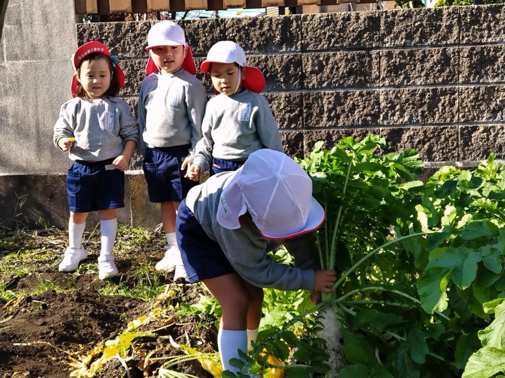 自分たちで収穫したからか、食べてみようと挑戦する姿や、美味しくて何度もおかわりをする子がいました。収穫することの楽しさ、食べることの喜びを感じられる機会になったのではないかと思います。