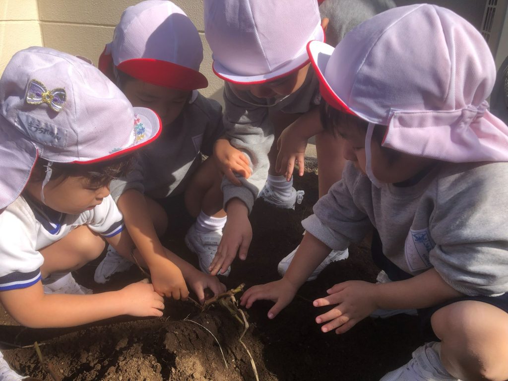 大きなイモ、丸いイモ、細長いイモ、雪だるまみたいなイモ...様々な形がありみんなで見せ合いっこしました♪